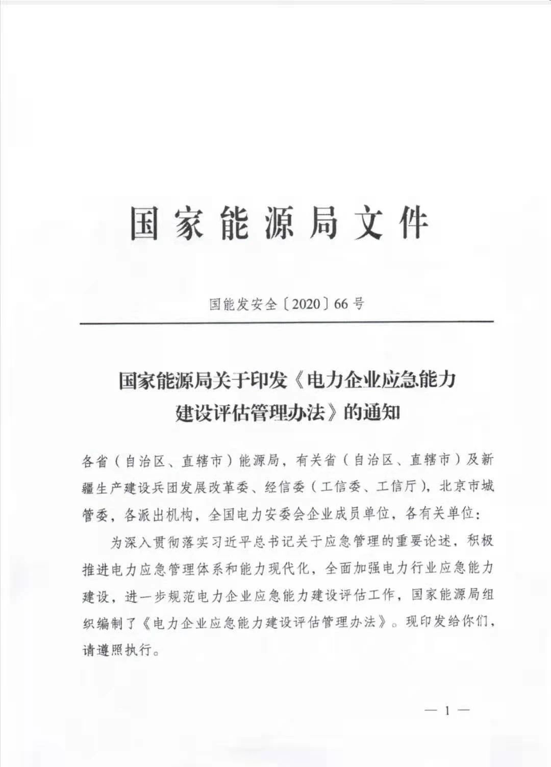 國家能源局印發(fā)《電力企業(yè)應急能力建設評估管理辦法》
