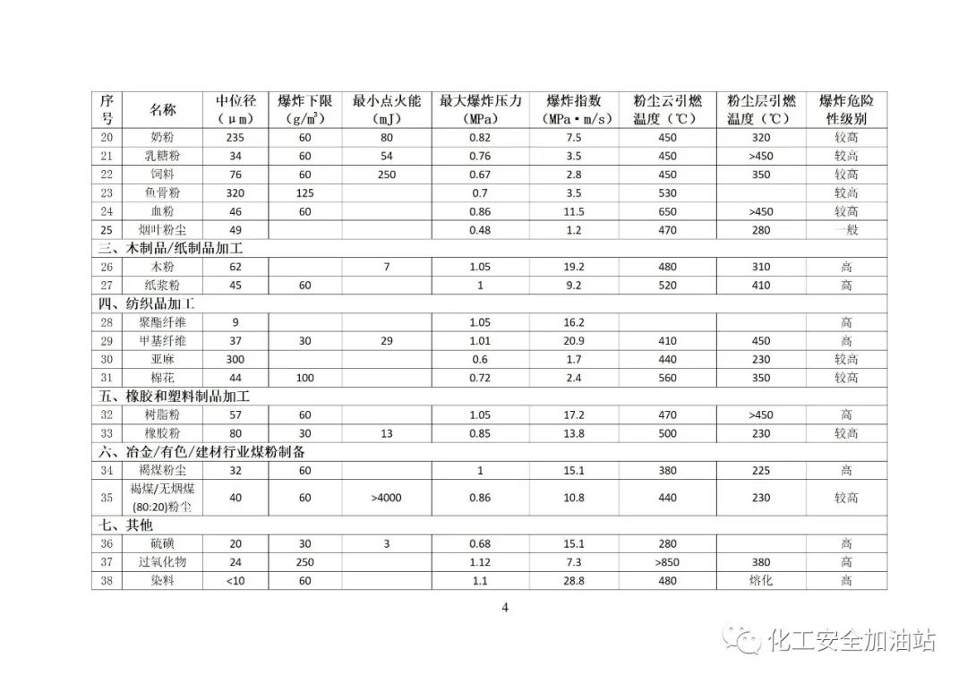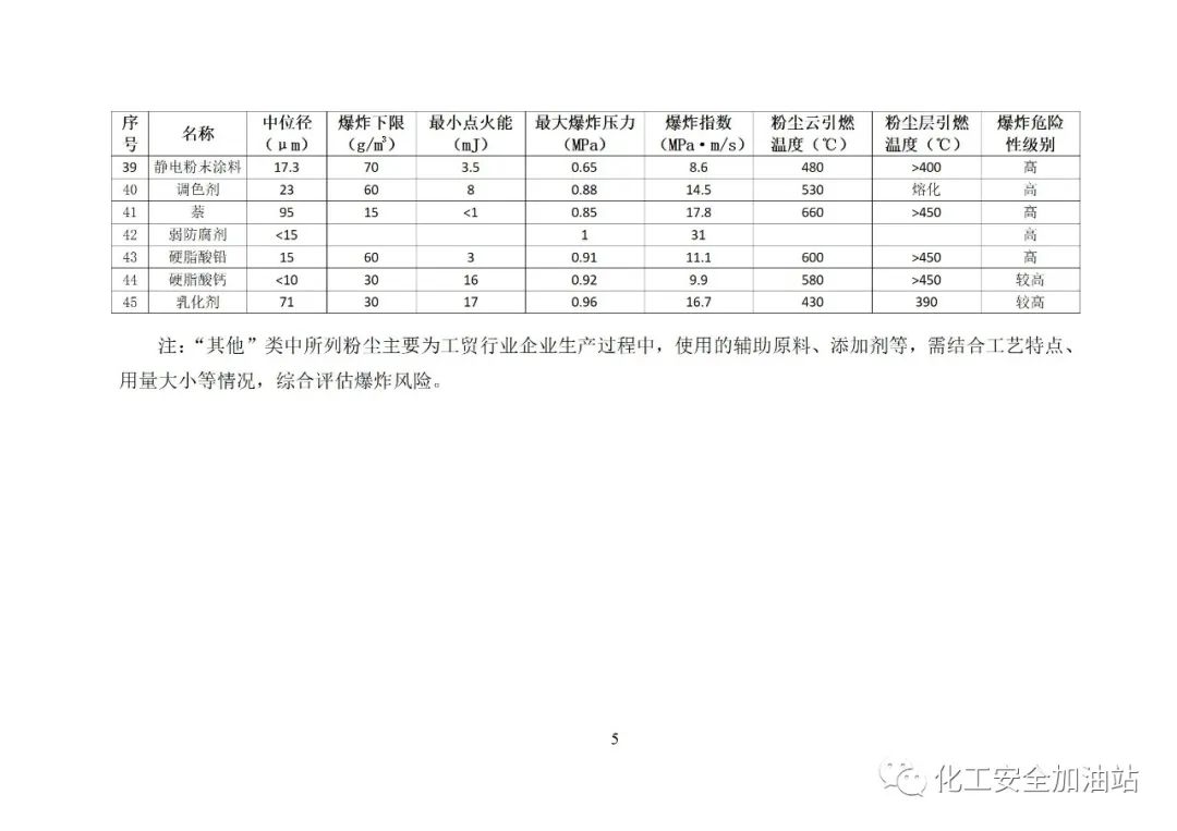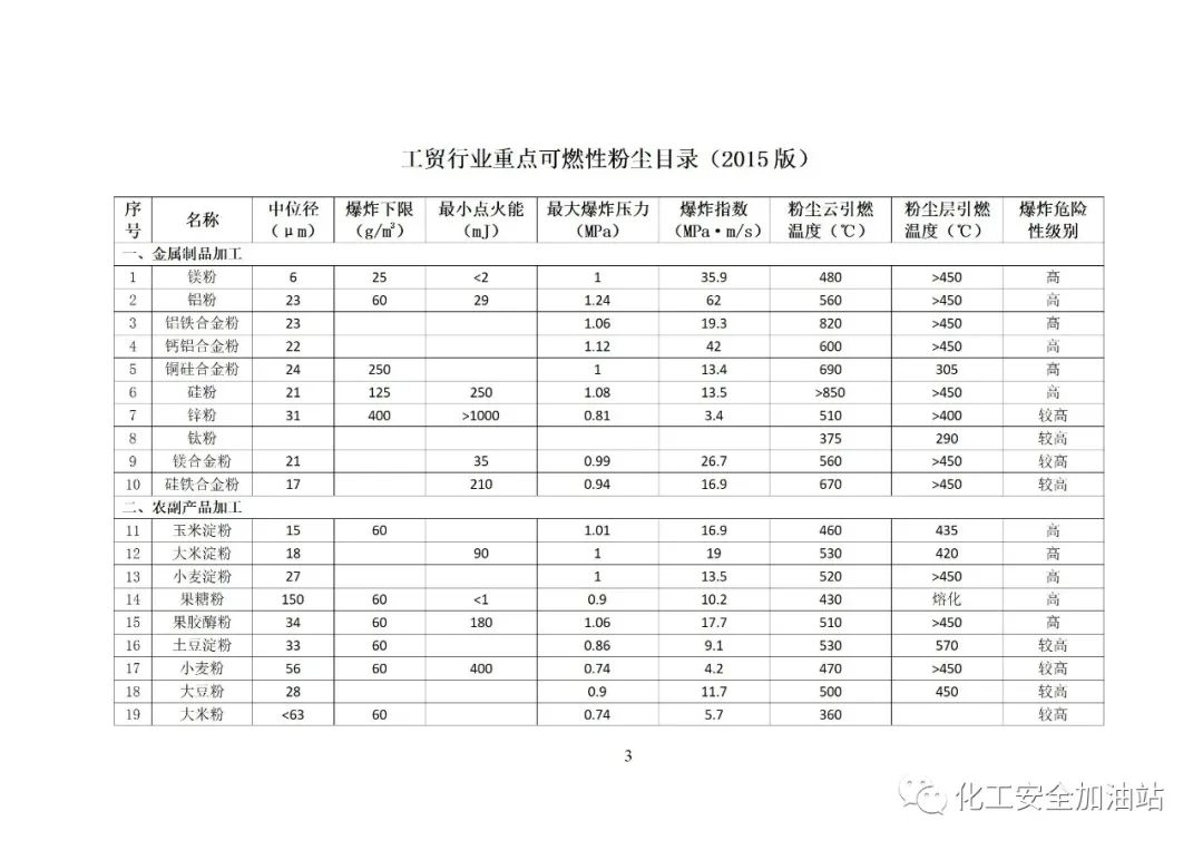 本目錄所列粉塵僅限于冶金、有色、建材、機(jī)械、輕工、紡織、煙草、商貿(mào)等行業(yè)企業(yè)生產(chǎn)加工所涉及的爆炸危險(xiǎn)性相對較高的可燃性粉塵。