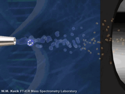 FT-ICR質(zhì)譜的分析器是一個具有均勻(超導)磁場的空腔,離子在垂直于磁場的圓形軌道上作回旋運動,回旋頻率僅與磁場強度和離子的質(zhì)荷比有關(guān),因此可以分離不同質(zhì)荷比的離子,并得到質(zhì)荷比相關(guān)的圖譜。