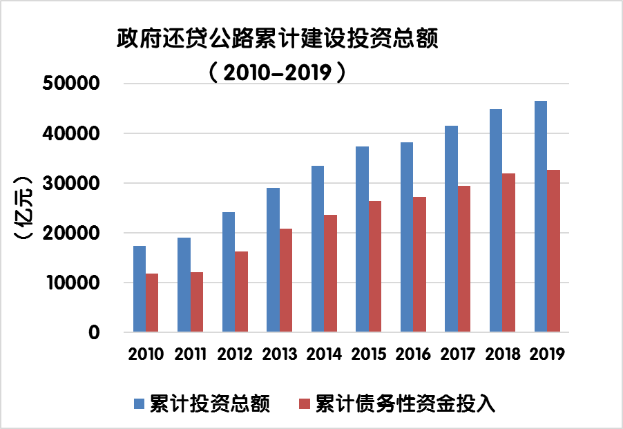 (注:累計建設(shè)投資總額指歷年和當(dāng)年收費公路建設(shè)投資額的合計)