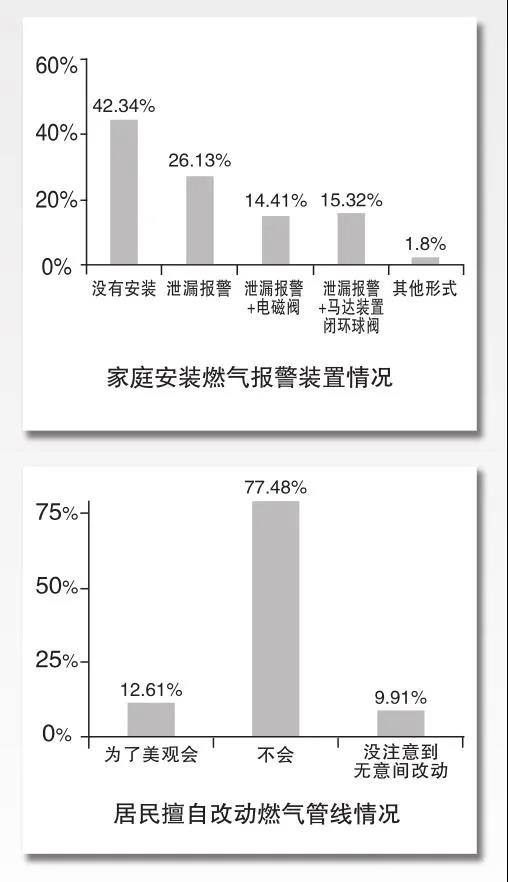 問卷調(diào)查的結(jié)果也顯示,在111名被調(diào)查者中,47人的家中沒有安裝燃?xì)鈭缶b置,占42.34%。