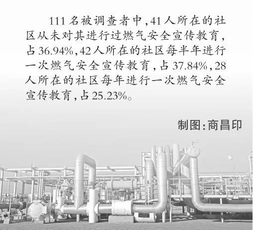 這一點,從記者的問卷調(diào)查結(jié)果中也得到了印證。111名被調(diào)查者中,41人所在的社區(qū)從未進行過燃?xì)獍踩麄鹘逃?6.94%,42人所在的社區(qū)每半年進行一次燃?xì)獍踩麄鹘逃?7.84%,28人所在的社區(qū)每年進行一次燃?xì)獍踩麄鹘逃?,?5.23%。