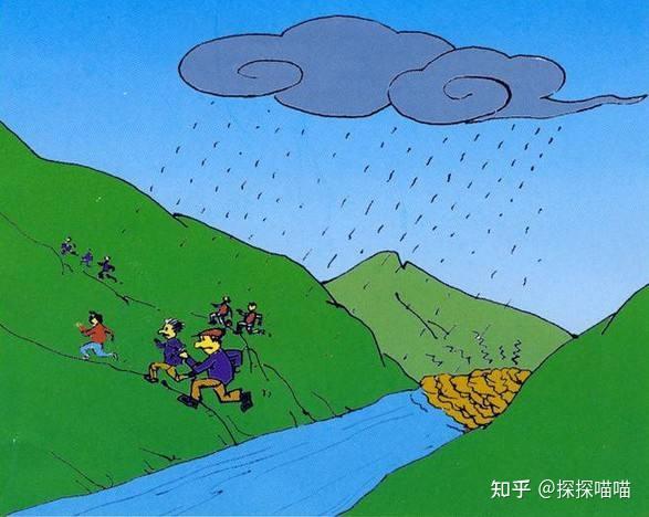- 山區(qū)洪水:避開(kāi)河道,防泥石流;別蹚水,可能被沖走;