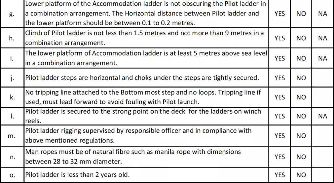 ·所有引航梯的使用年限必須小于2 年。引航員/訪(fǎng)問(wèn)港口的人員,可能會(huì)要求查看引航梯建造證書(shū)。