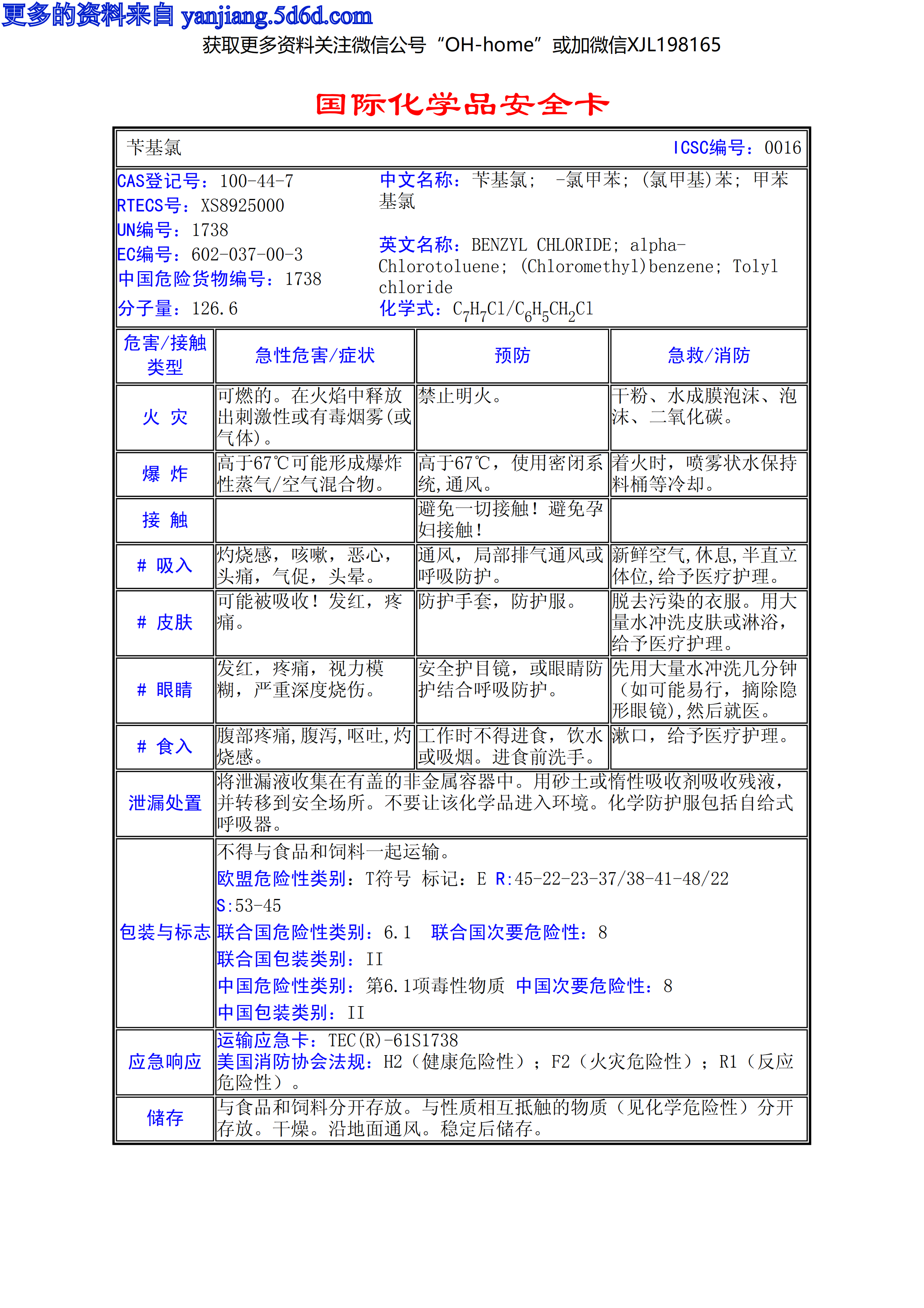 芐基氯MSDS