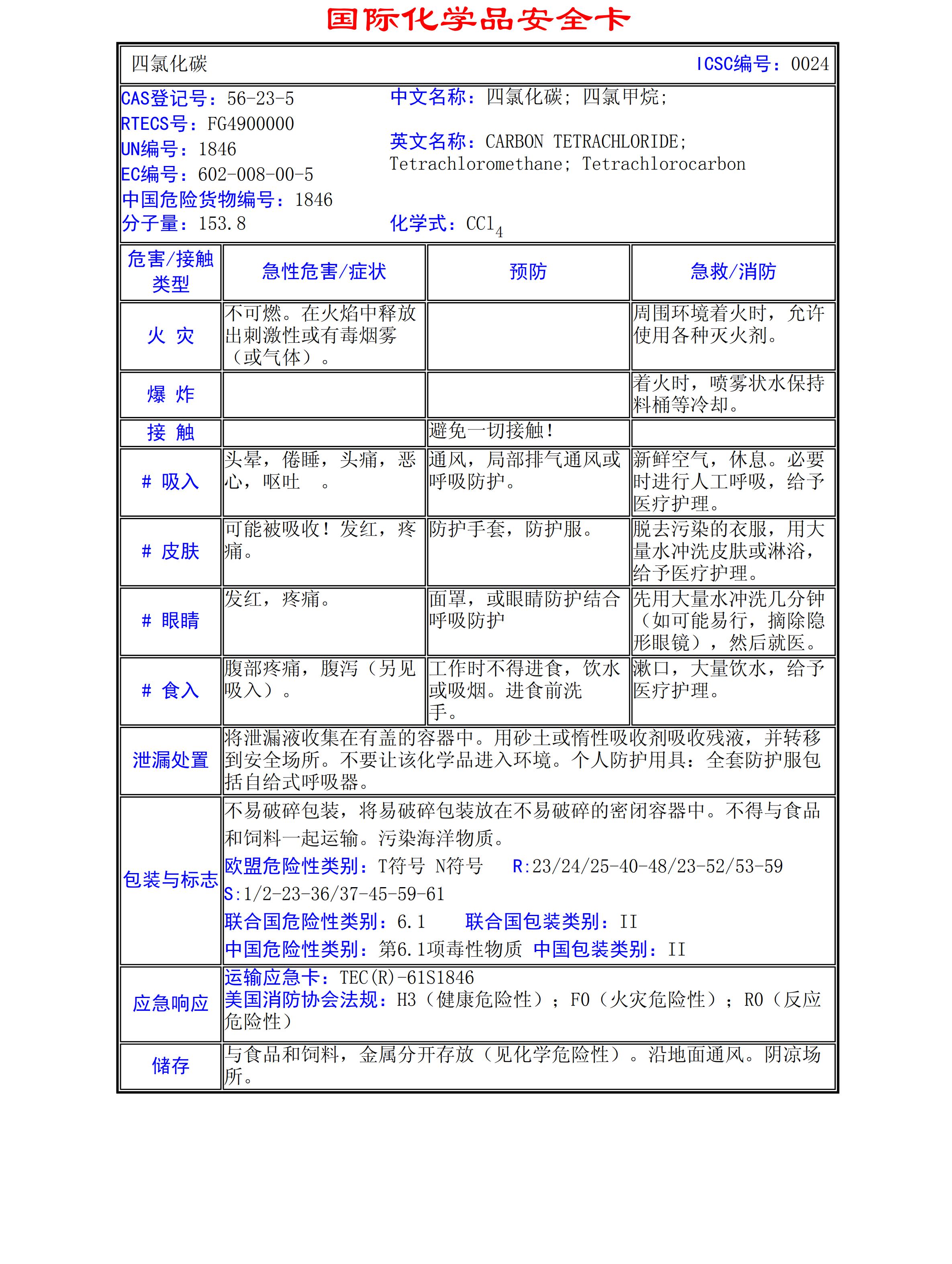 四氯化碳MSDS