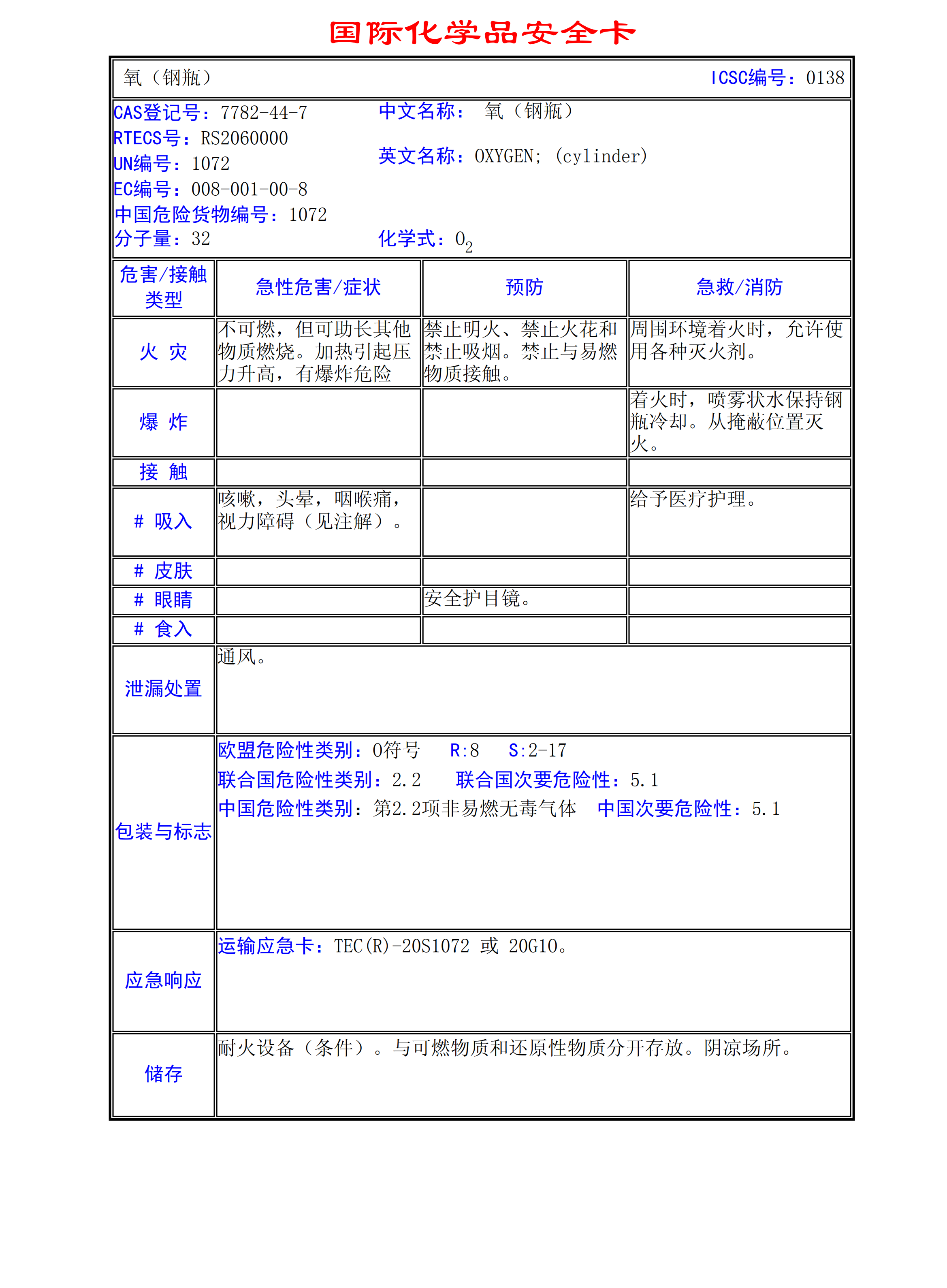 氧(鋼瓶)MSDS