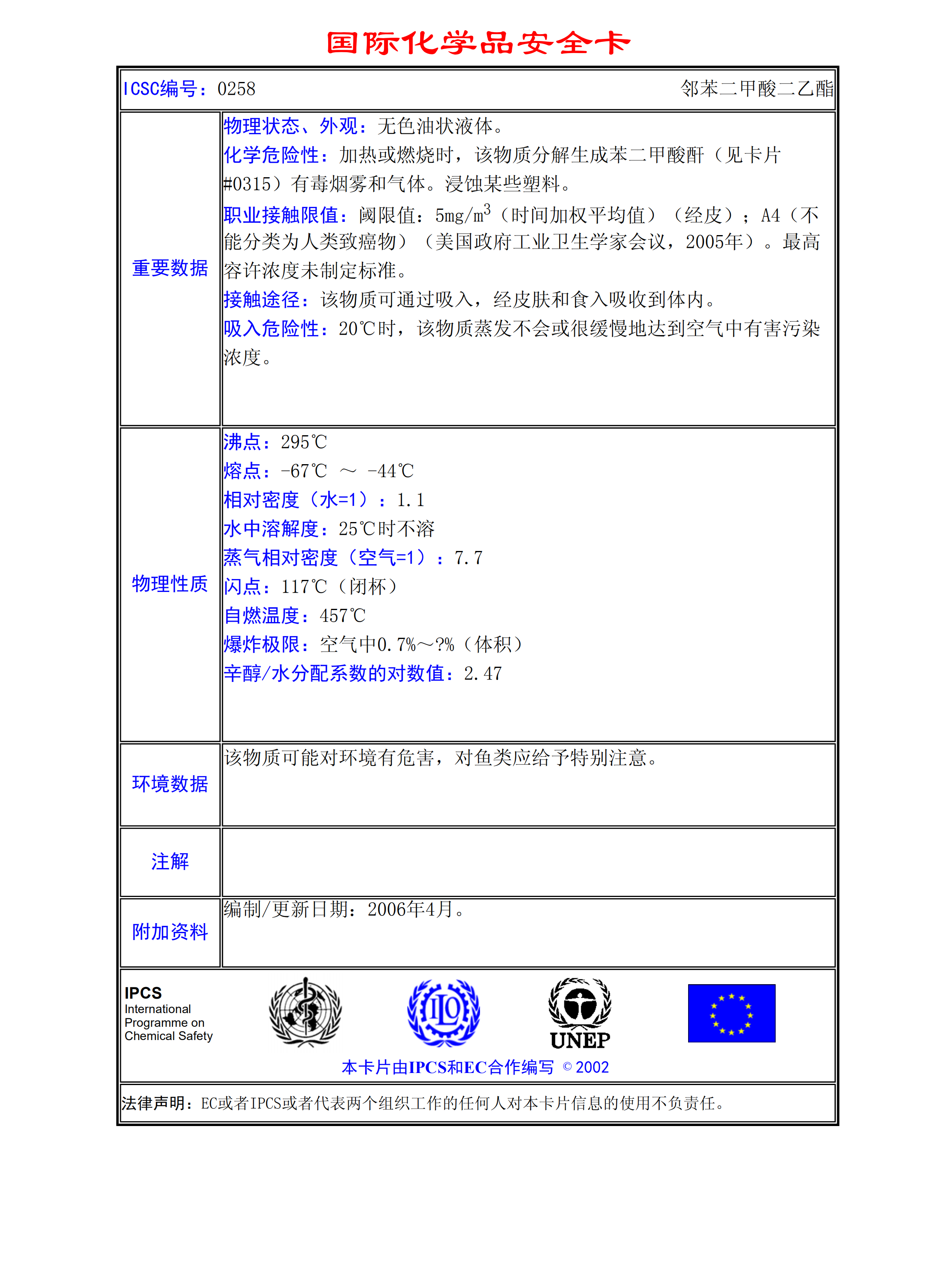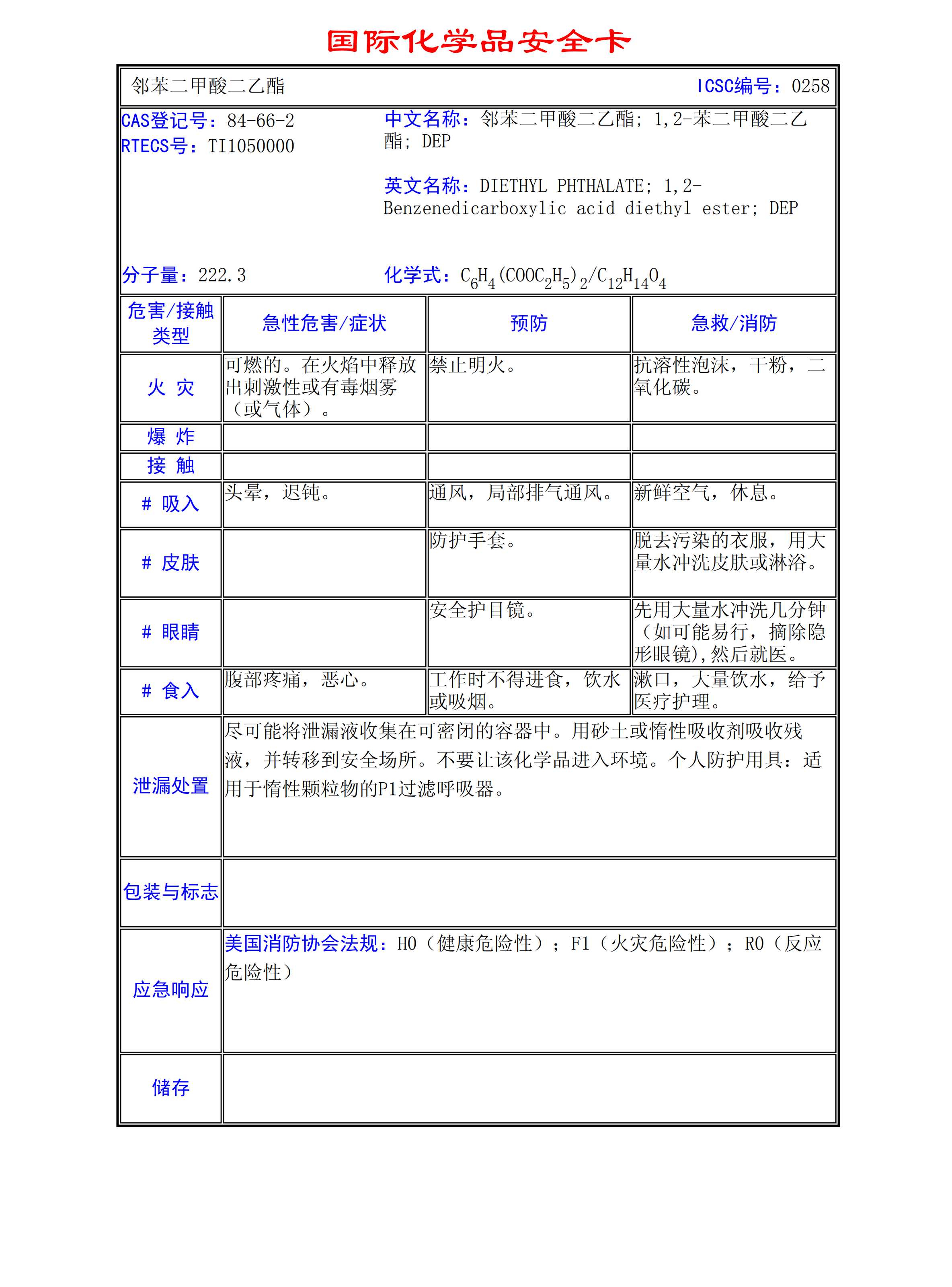 鄰苯二甲酸二乙酯MSDS