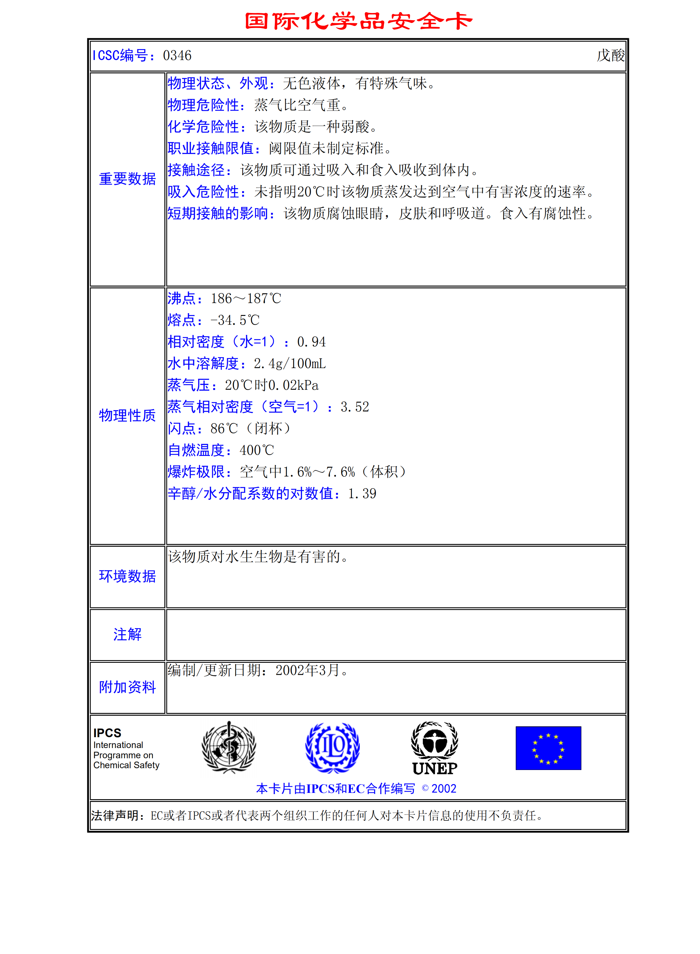 戊酸MSDS