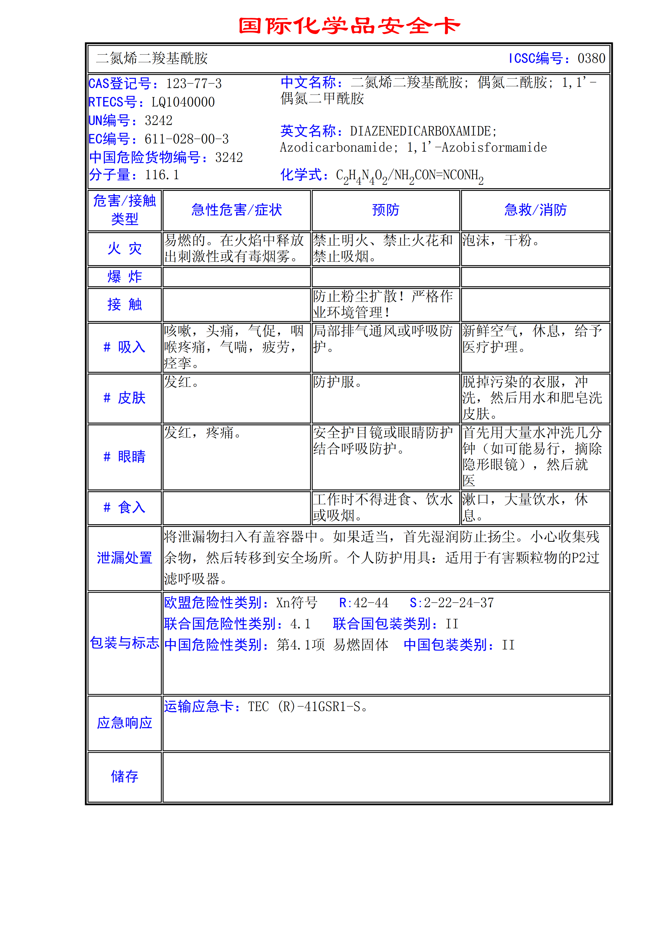 二氮烯二羧基酰胺MSDS