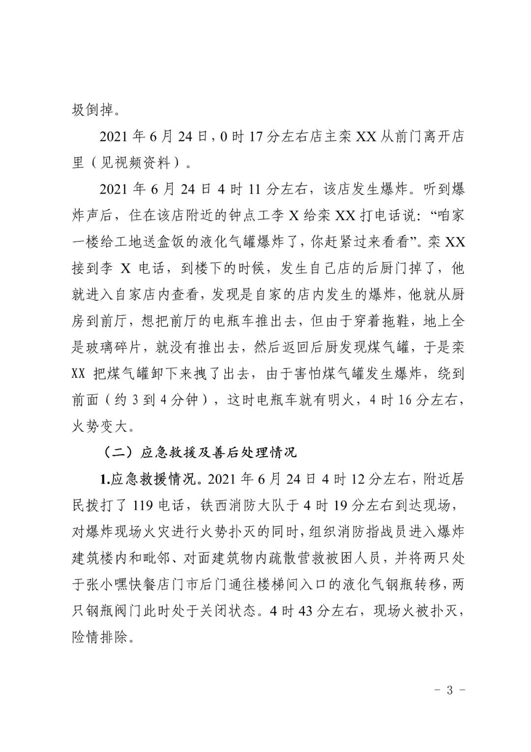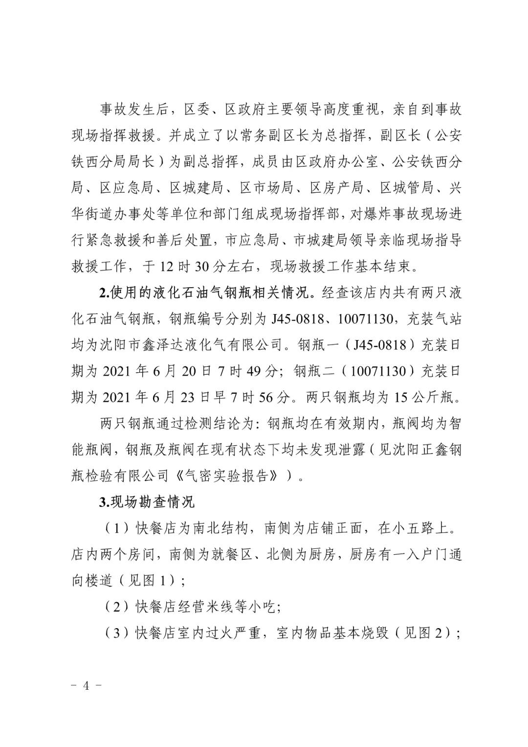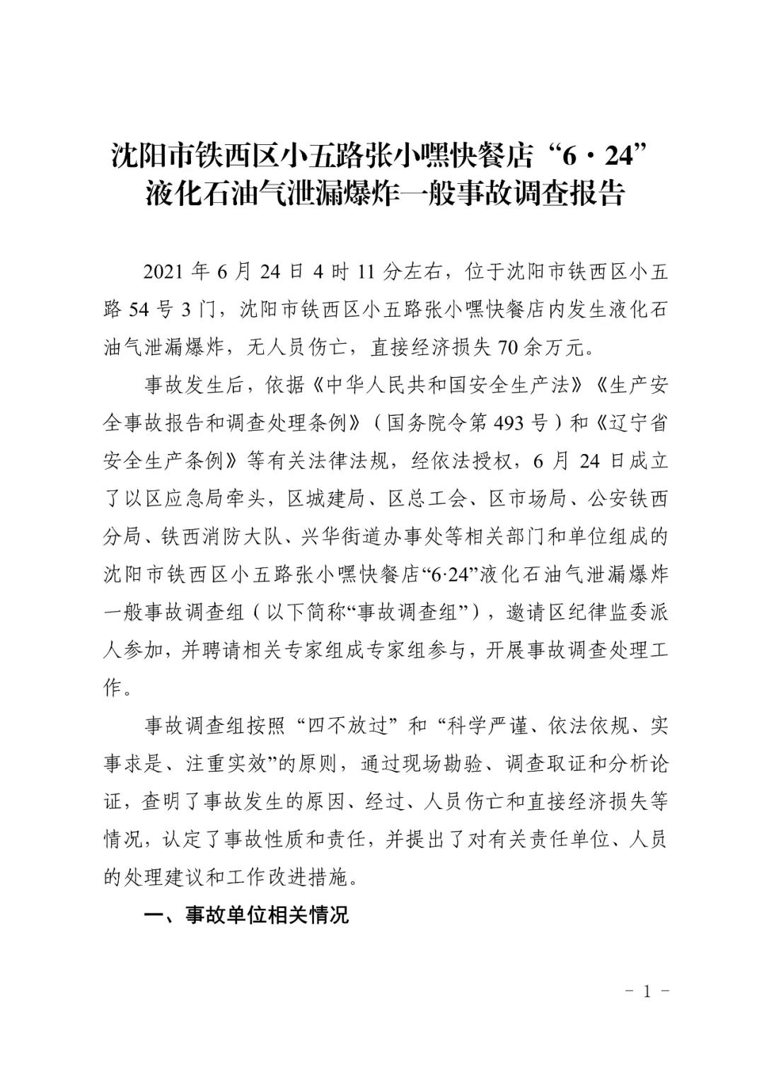 2021 年 6 月 24 日 4 時(shí) 11 分左右,位于沈陽市鐵西區(qū)小五路 54 號(hào) 3 門,沈陽市鐵西區(qū)小五路張小嘿快餐店內(nèi)發(fā)生液化石油氣泄漏爆炸,無人員傷亡,直接經(jīng)濟(jì)損失 70 余萬元。