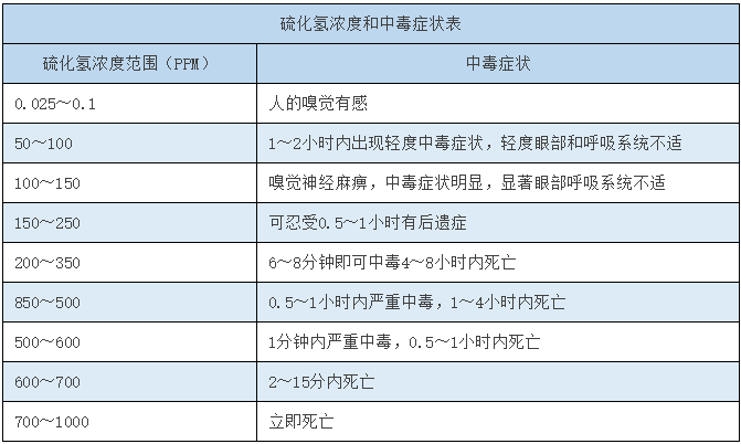 硫化氫濃度和中毒癥狀表