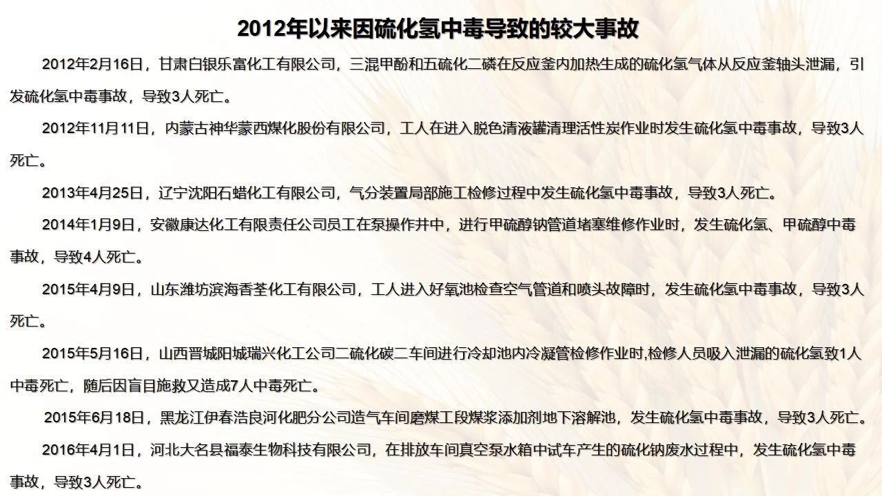 易發(fā)生硫化氫中毒的部分行業(yè)領(lǐng)域