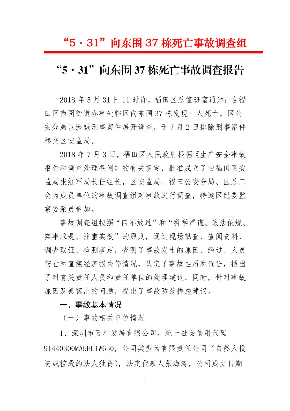 “5.31”向東圍37棟死亡事故調(diào)查報告