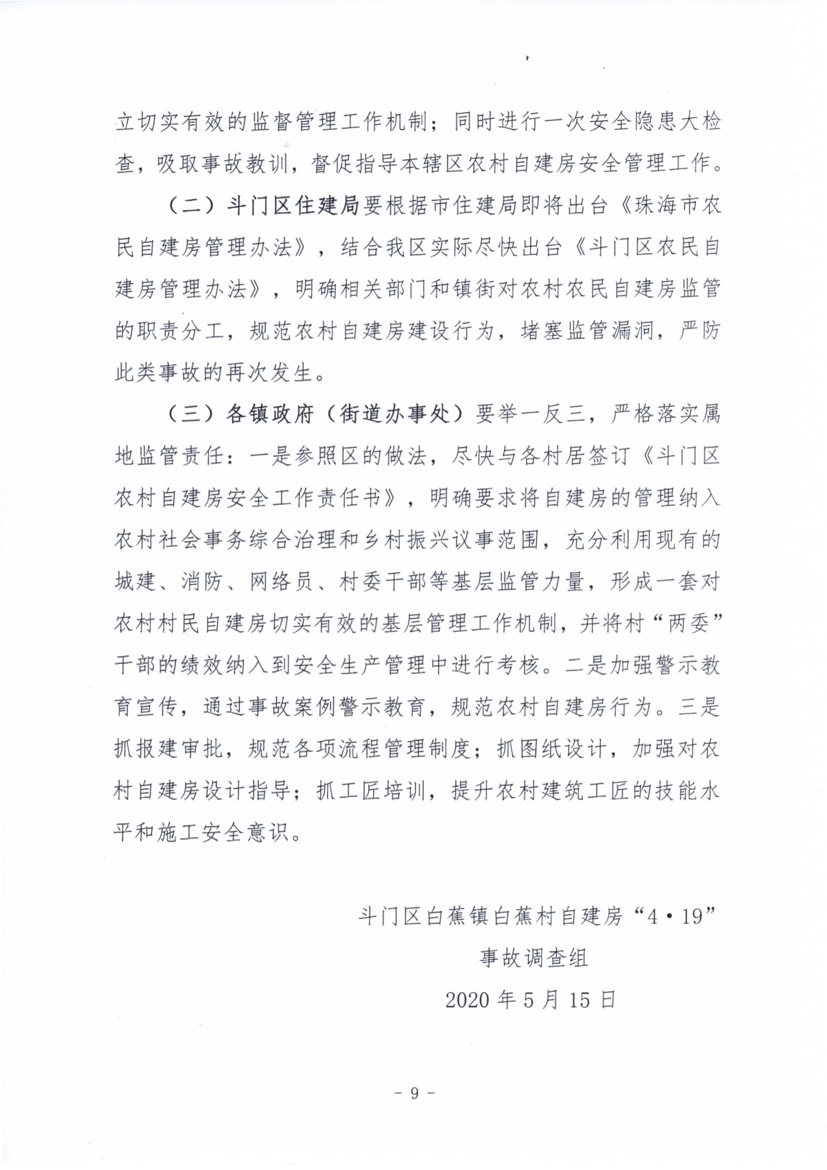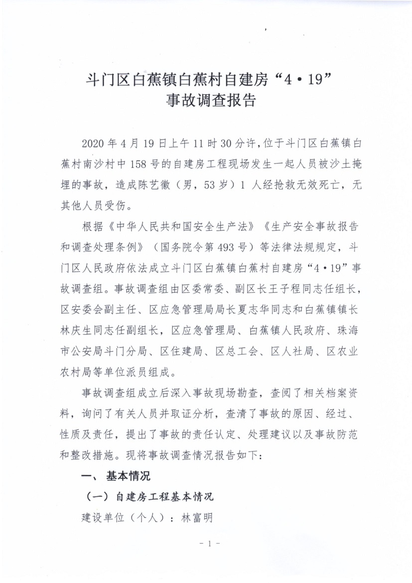 斗門區(qū)白蕉鎮(zhèn)白蕉村自建房“4·19”事故調(diào)查報(bào)告
