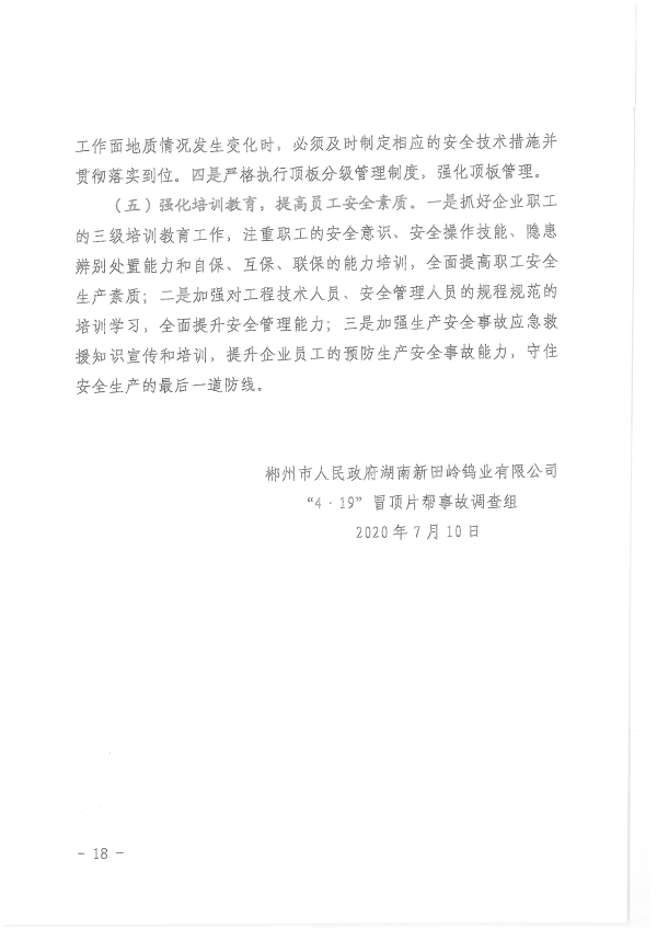 湖南新田嶺鎢業(yè)有限公司“4?19”冒頂片幫事故調(diào)查報(bào)告