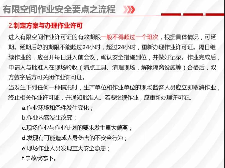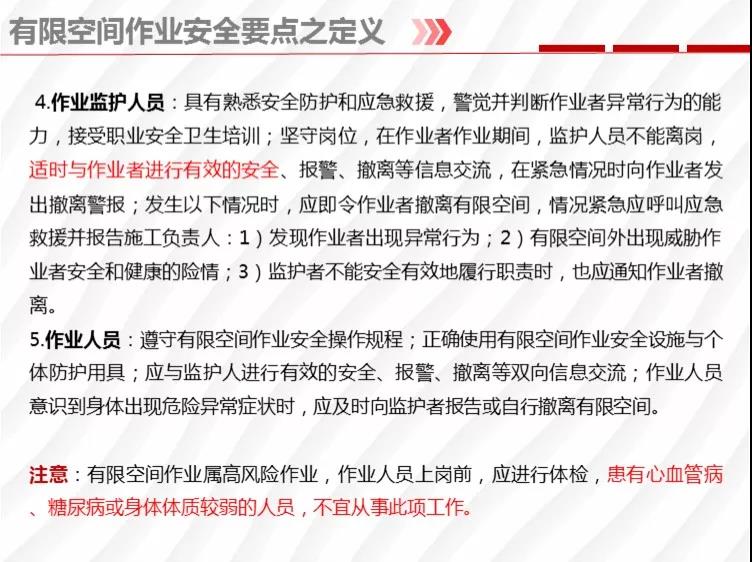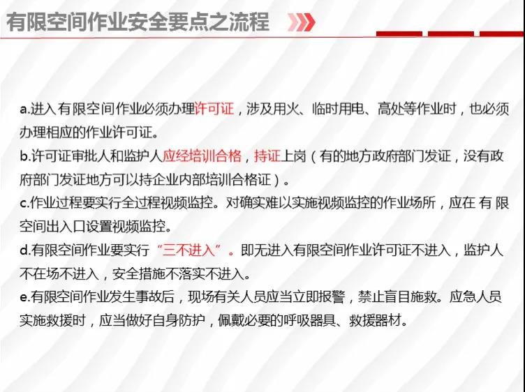 二要嚴(yán)格落實有限空間作業(yè)安全管理規(guī)定。各地各有關(guān)部門要督促企業(yè)嚴(yán)格執(zhí)行《安徽省有限空間作業(yè)安全管理與監(jiān)督暫行規(guī)定》,凡涉及到有限空間作業(yè),做到“五個必須”,即必須嚴(yán)格實行作業(yè)審批制度;必須做到“先通風(fēng)、再檢測、后作業(yè)”;必須配備個人防中毒窒息等防護裝備,設(shè)置安全警示標(biāo)識;必須對作業(yè)人員進行安全培訓(xùn);必須制定應(yīng)急措施,現(xiàn)場配備應(yīng)急裝備,嚴(yán)禁盲目施救。