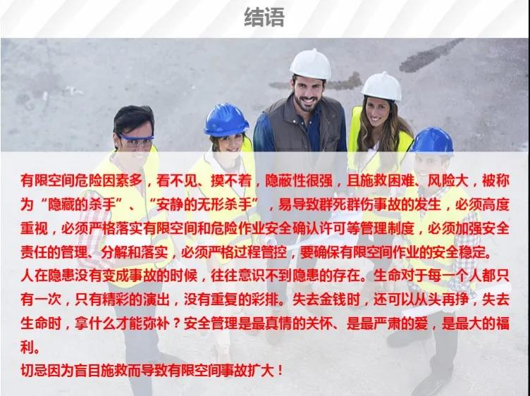 事故暴露出企業(yè)和從業(yè)人員對有限空間風(fēng)險辨識不清、試生產(chǎn)過程中安全防范措施不到位、盲目施救導(dǎo)致傷亡擴大等問題,也暴露出監(jiān)督管理存在薄弱環(huán)節(jié)等問題。省政府領(lǐng)導(dǎo)高度重視,王清憲省長、鄧向陽常務(wù)副省長、張紅文副省長先后作出批示,要求妥處善后,查清原因,嚴(yán)格追責(zé)。為深刻吸取事故教訓(xùn),堅決遏制類似事故再次發(fā)生,現(xiàn)提出以下工作要求,請結(jié)合本地區(qū)本部門實際認(rèn)真貫徹執(zhí)行。