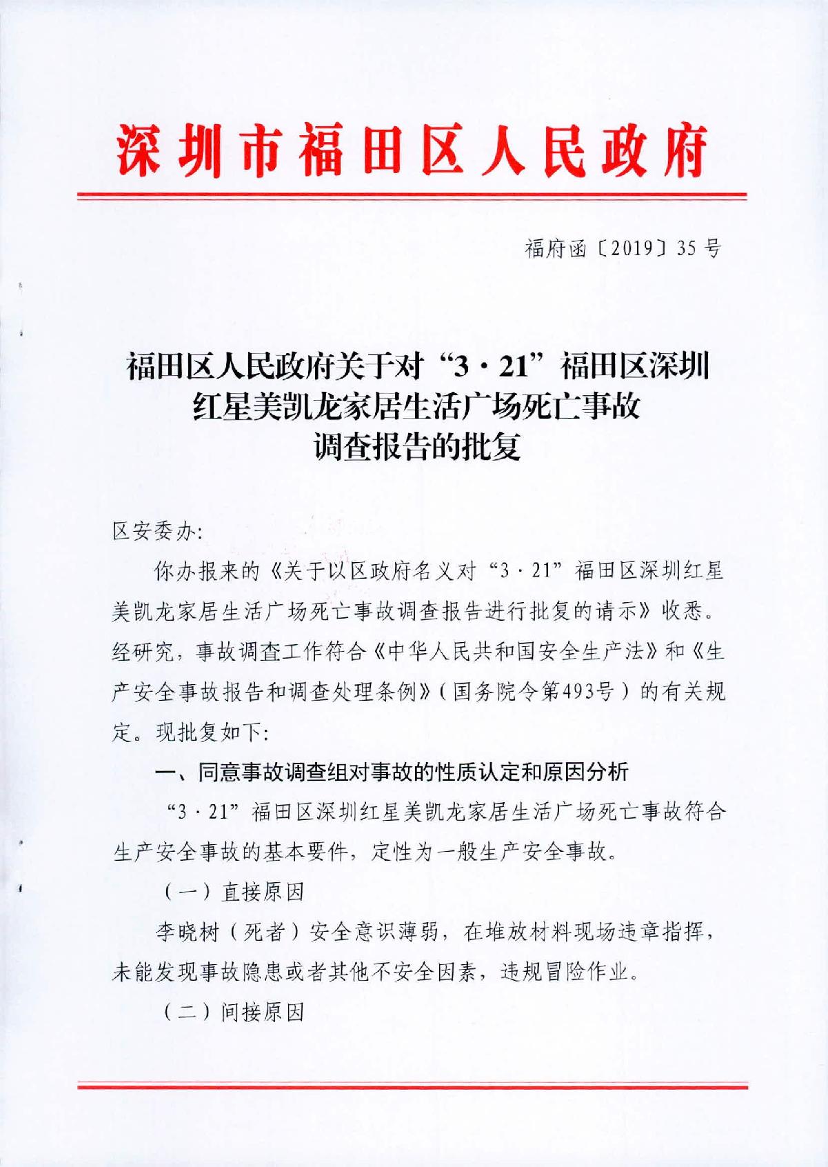 “3.21”福田區(qū)深圳紅心美凱龍家居生活廣場死亡事故調(diào)查報告