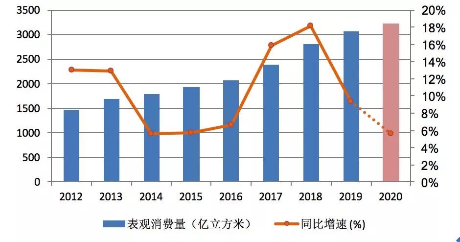 中國石油經濟技術研究院今年年初預測,我國2020年天然氣消費量將達到3300億立方米,同比增速8.6%。