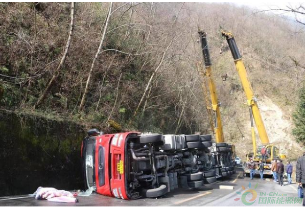 消防隊(duì)員10時(shí)48分到達(dá)現(xiàn)場,偵查發(fā)現(xiàn)天然氣槽車側(cè)翻在道路靠山體一旁。經(jīng)偵察,事故車輛為一輛裝載22噸液化天然氣槽罐車側(cè)翻,事故發(fā)生后車內(nèi)兩名司乘人員自行撤離出,身體并無大礙,車輛罐體表面無破損,未發(fā)生泄漏。
