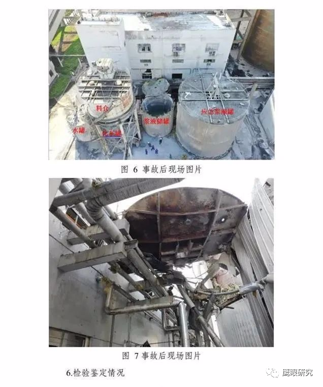 此時,項目經(jīng)理讓張成到罐體底部清理漏出的漿液。當(dāng)張成沿著罐體周圍的梯子剛剛下到地面,突然聽到一聲巨響,他的手和腿都被什么東西刮傷了,開始流血。他顧不上自己的傷,抬頭一看發(fā)現(xiàn)罐頂已經(jīng)沒了。他趕緊往罐頂跑,發(fā)現(xiàn)原來在罐頂?shù)?名同事都已不見蹤影。此時,公司的另一名同事趕到現(xiàn)場。他們報警后,立即開始在現(xiàn)場搜尋同事。沒多久,他們就找到所有的同事,有的躺在罐子旁的地上,有的在附近的泵房頂上,最遠的人被爆炸沖出10多米遠。