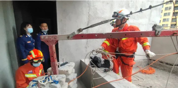 “師傅,千萬不要亂動,保持情緒穩(wěn)定,我們馬上來救你們!”消防指揮員一邊通過喊話,安撫被困工人,一邊令人攜帶救生繩索和防墜落部件等救生器材,進入建筑物內展開救援。
