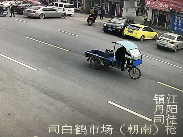 功夫不負(fù)有心人,民警終于在丹陽(yáng)丹伏路與觀鶴路交叉口,發(fā)現(xiàn)了拉了兩只煤氣瓶的嫌疑車輛。通過監(jiān)控跟進(jìn)和倒查,警方鎖定了該車最后駛向丹陽(yáng)司徒西麻村道里一段軌跡。但是,嫌疑人外貌特征不明顯。