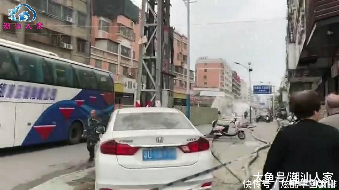 潮州發(fā)生一起天然氣管道泄漏事故, 現(xiàn)場拉起警戒線和疏散人群
