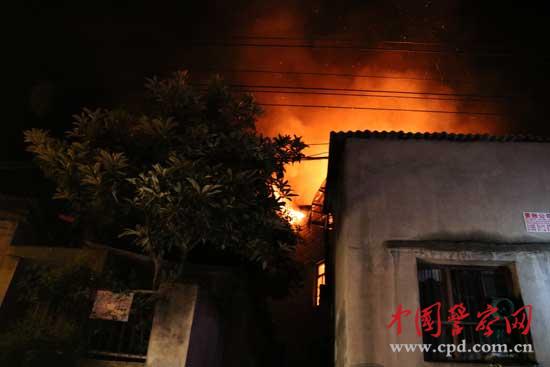 中隊(duì)官兵到達(dá)現(xiàn)場(chǎng)后,只見起火民房火勢(shì)較大,正處于猛烈燃燒階段。消防官兵經(jīng)現(xiàn)場(chǎng)詢問知情人和火情偵察得知,起火點(diǎn)是二樓右側(cè)的一間房屋里的煤氣罐,并發(fā)生了一次爆炸,火勢(shì)把二樓4間房房頂全部引燃,二樓房間地面被炸穿,火苗落到一樓室內(nèi)引燃了一樓的一間房屋,屋內(nèi)無人員被困。