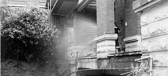 消火栓取水時(shí),新的問題出現(xiàn)了?!跋浪ㄔ谝惶幓趬Ω浇鏊诰o貼著墻面,根本就沒辦法用?!睘榱瞬坏⒄`救援工作,消防官兵立即用器材對消火栓周邊墻壁進(jìn)行處置,留出足夠的空間供水帶取水。